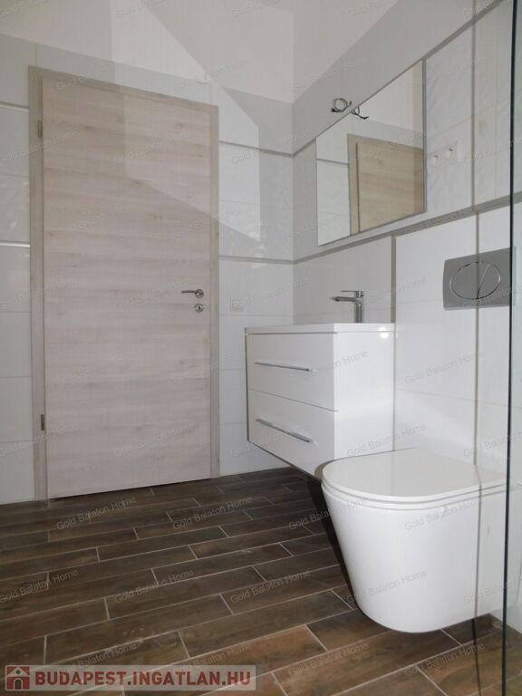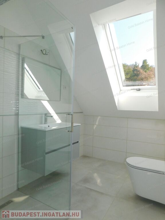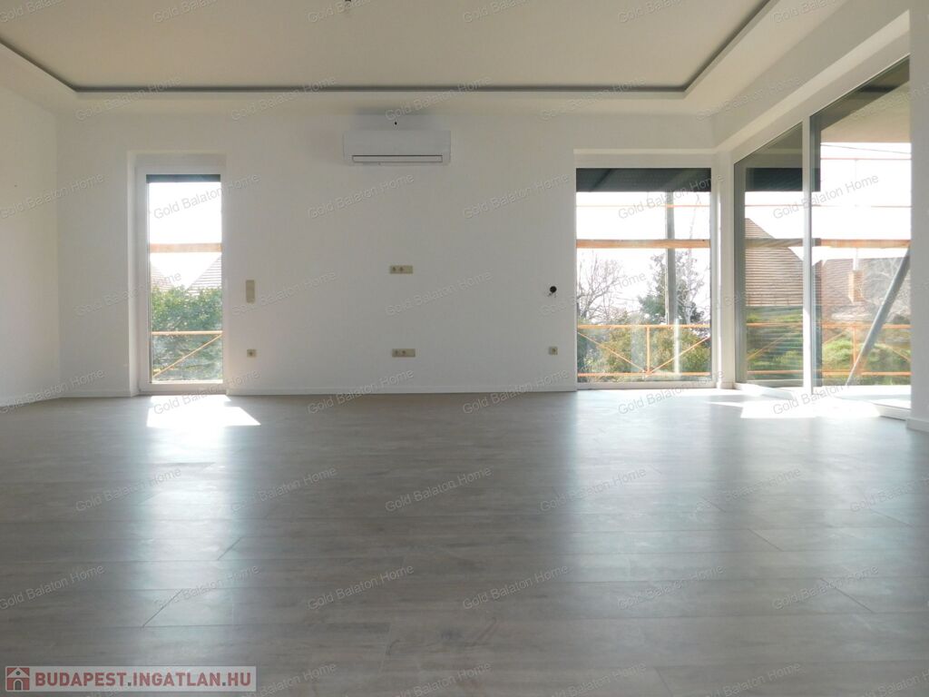 A kettő szintes ház öt hálószobával, kettő nappalival, konyha étkezővel, négy fürdőszobával, szintenként fedett terasszal épült. Kényelmes életteret biztosít Ön és családja számára a ház nagy udvarral. Az emeleti teraszról részpanorámás kilátás a Balatonra. Medence csak igény esetén épül meg, mely költsége nem szerepel az eladási árban.