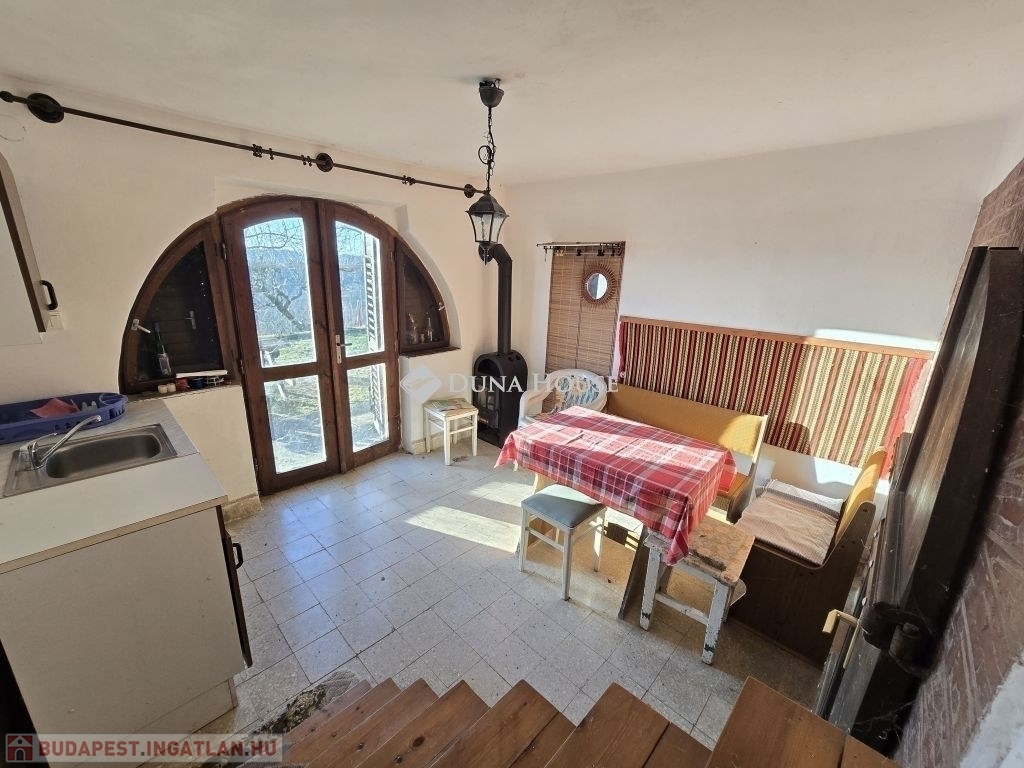 Panorámás zártkerti telek kis házzal eladó Gyódon, Pécstől 5 km-reGyód felső részén, a napos fennsíkon eladó egy 700 m²-es, panorámás, zártkerti telek egy kb. 20 m² alapterületű, belső kétszintes gazdasági épülettel, mindössze kb. 5 km-re Pécstől.Az épület 1985-ben épült, karbantartott állapotú. Nem lakóingatlanként használták, de felújítással akár állandó lakhatásra is alkalmassá tehető, a környéken többen életvitelszerűen laknak.Az alsó szinten konyhaétkező, wc kézmosóval, valamint egy könnyen megközelíthető pince található (csak egy lépcsőfok vezet le). A felső szinten két egymásból nyíló helyiség van, amelyek szobaként használhatók.A telek körbekerített, két utcáról is megközelíthető, aszfaltos úton elérhető, hivatalos házszámmal rendelkezik (Mezőszél utca 38). A terület lejtős, nyugati tájolású, így napos és szép panorámával rendelkezik.A telken vezetékes víz van a házban, ami a zártkerti ingatlanoknál külön előny. Gáz a telken belül megtalálható, jelenleg kályhával fűthető az épület. Emellett kerti csap, ciszterna, ülepítős szennyvízmegoldás, pince és egy kisebb szerszámtároló is tartozik az ingatlanhoz.Ideális választás lehet hétvégi háznak, kertészkedéshez vagy felújítás után akár állandó lakhatásra is.A terület művelés alól kivont,így azonnal birtokba vehető.