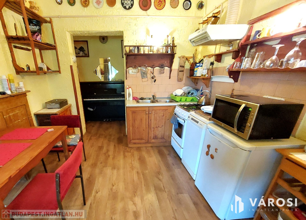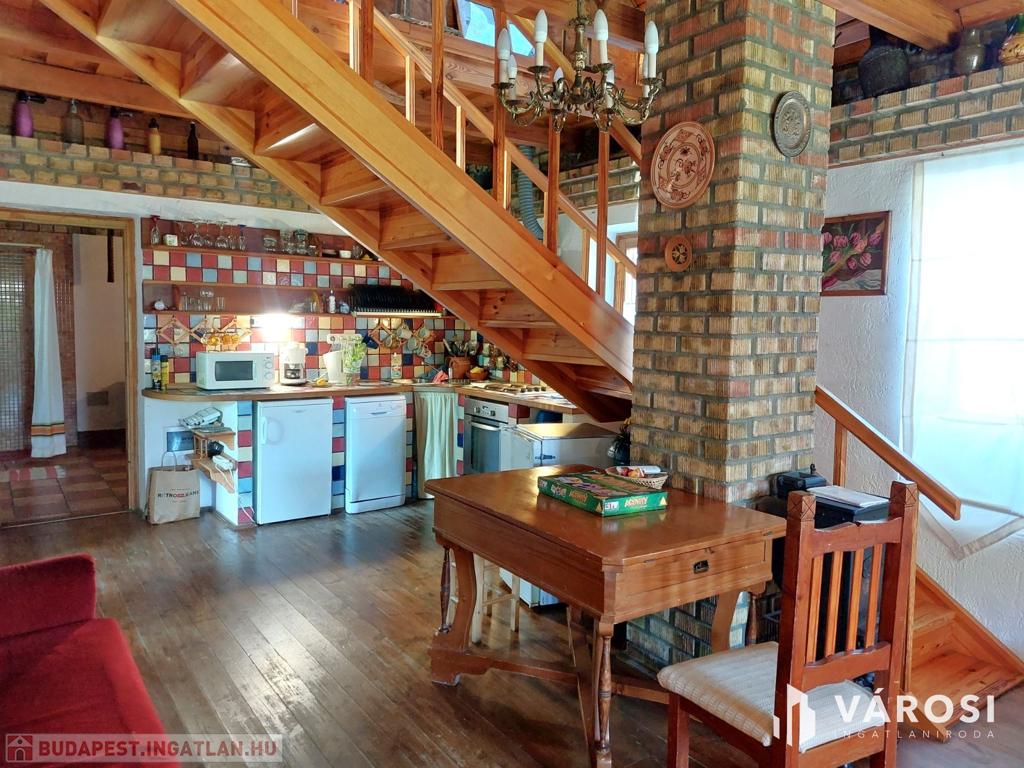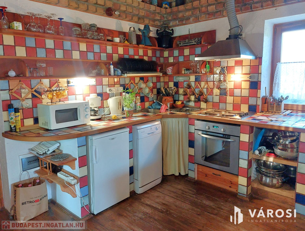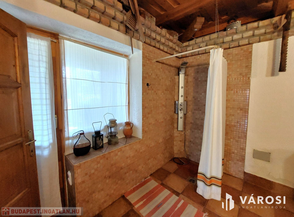 A földszinten 35m2 toszkán stílusban megálmodott nappali-konyha-étkező, tágas fürdőszoba és recepció található. A konyhasarok színes, mázas csempével kirakott, vidám, hangulatos éke az egész lakásnak. Telis-tele a ház éveken át gyűjtögetett régiségekkel, antik tárgyakkal, melynek értékéről külön kell beszélni. Ha szeretnék ezt az elbűvölő ingatlant teljes berendezéssel megvásárolni, mángorlóval, szakajtóval együtt, akkor ez külön megegyezés tárgyát képezi...