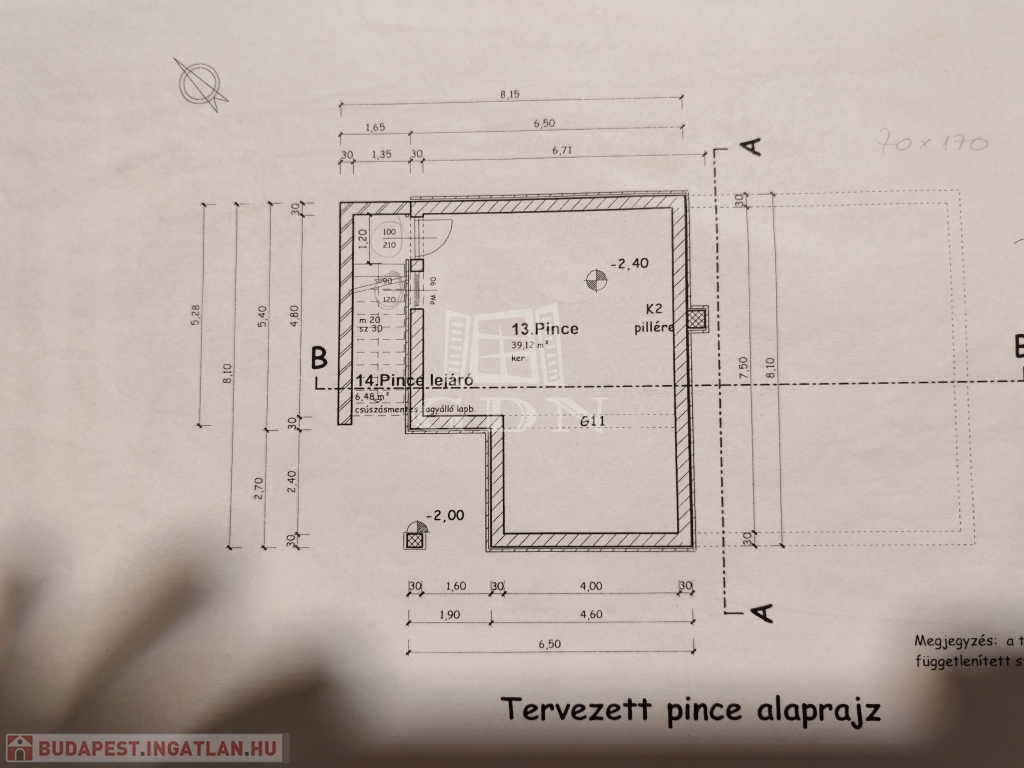 Betonalapra épült téglából, cserépfedéssel ,esőelvezető csatornával.