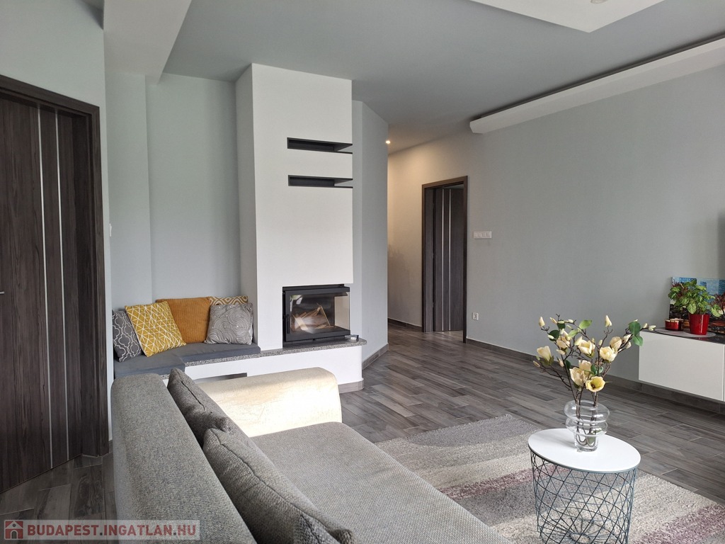 A tágas nappaliban található egy fa tüzeléses kandalló is, mely nemcsak látványként használható.