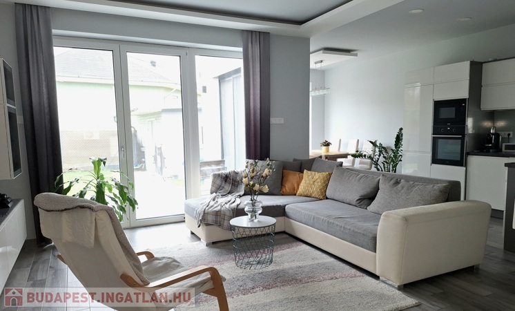 A nyílászárók 3 rétegűek, 6 légkamrásak, így a rezsiköltség rendkívül alacsony. A gondos tervezésnek köszönhetően, minden napszakban éri napsütés az ingatlant. Reggel a hálószobák, majd a déli oldalon a szülői háló, utána pedig estig a nappali és az étkező úszik fényárban. A nappaliból és a szülői hálóból is megközelíthető a 34 nm-es L alakú tágas, jól kihasználható terasz.