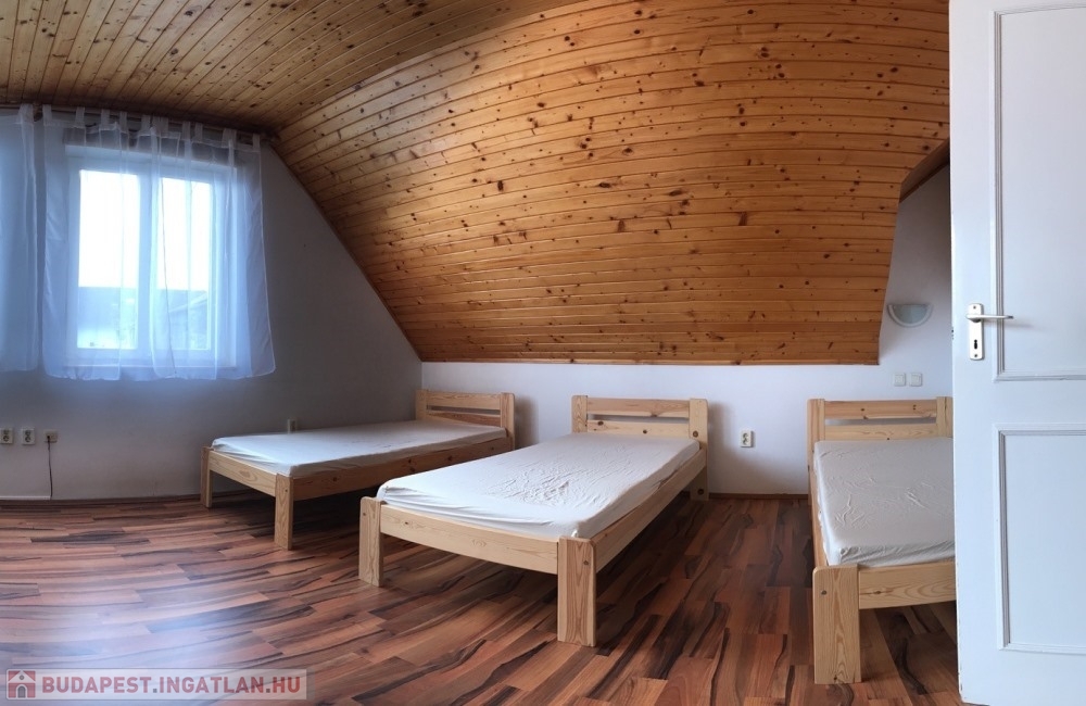 Győr-Likócs természet közeli, családi házas nyugodt övezetében, AUDI gyártól, Ipari Parktól, Belvárostól, M1-es autópályától pár perces autótávolságra, 2.100 m2-es összközműves telken lévő 2 szintes, jó állapotú épületben, összesen 9 db külön bejárattal rendelkező (10 m2; 14 m2; 17 m2, 19 m2, 20 m2 nagyságú) hálószobákból, 3 db fürdőszoba + WC-ből, méretes nappaliból/társalgóból/közösségi térből (54 m2), különálló konyhából, méretes étkezőből (17 m2), különálló kamrából, 35 m2-es TERASZBÓL, különálló pincetárolóból álló, valamint több KLÍMÁVAL felszerelt, 336 m2 hasznos alapterületű panzió/családi ház eladó.