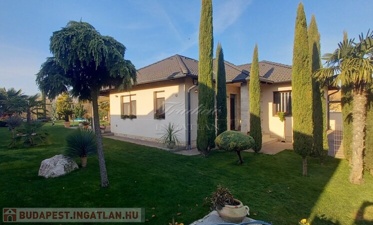 Győr kedvelt kertvárosi részén, Ménfőcsanak csendes, forgalom mentes mellékutcájában kínálom eladásra ezt a gyönyörűen parkosított 1830 m2-es telken lévő, nappali + 3 hálószobás, újszerű állapotú, 2014-ben téglából épült családi házat.