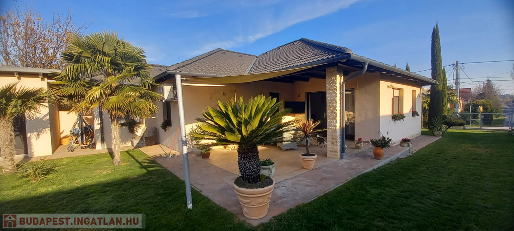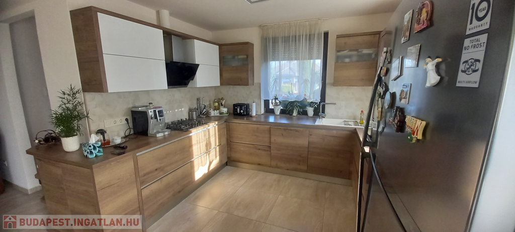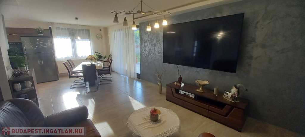 Győr kedvelt kertvárosi részén, Ménfőcsanak csendes, forgalom mentes mellékutcájában kínálom eladásra ezt a gyönyörűen parkosított 1830 m2-es telken lévő, nappali + 3 hálószobás, újszerű állapotú, 2014-ben téglából épült családi házat.
