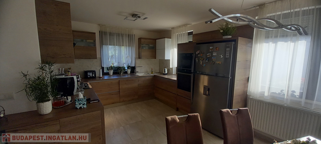 A hőszigetelt, kiváló minőségű fa nyílászárók redőnnyel és szúnyoghálóval is rendelkeznek.