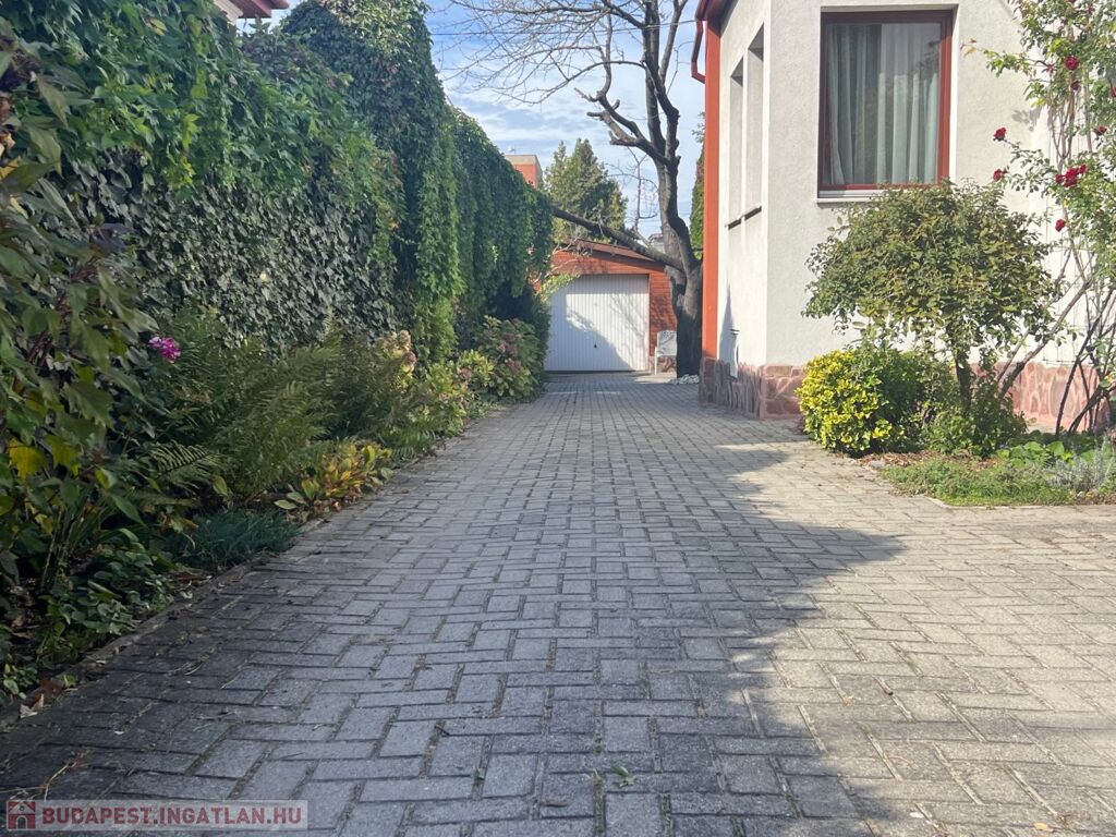 A ingatlanhoz megérkezve automata, kétszárnyú kapun keresztül, térkövezett közlekedő felületen jutunk garázsba.