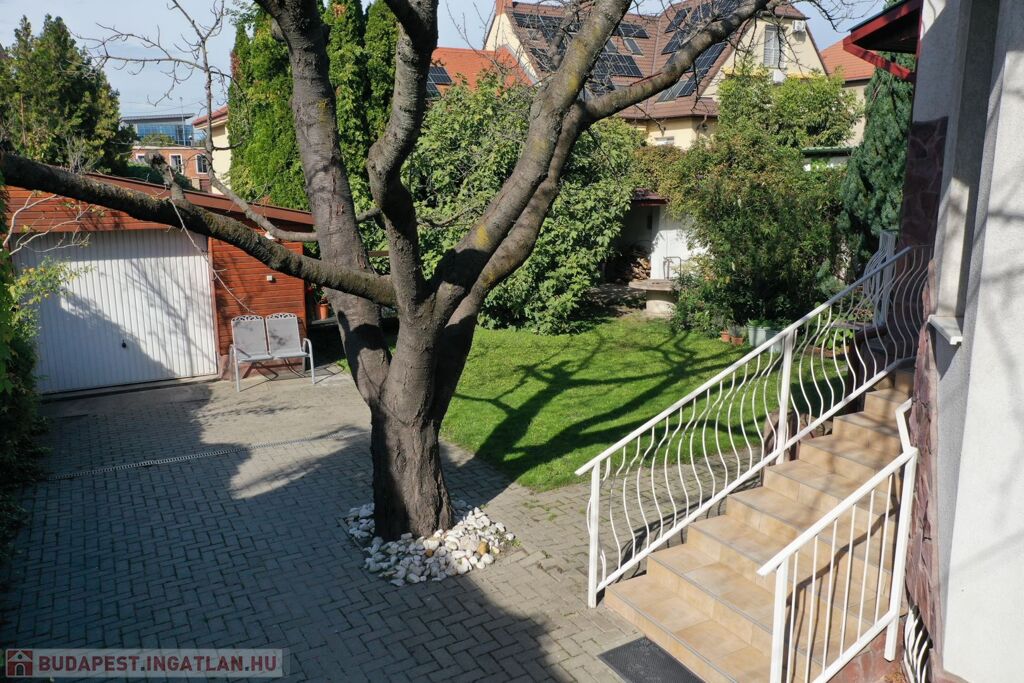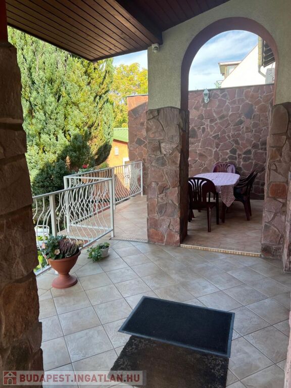Az épület földszinti (magasföldszinti), kert felé néző, hangulatos teraszára, 9 lépcsőn keresztül érkezünk.
