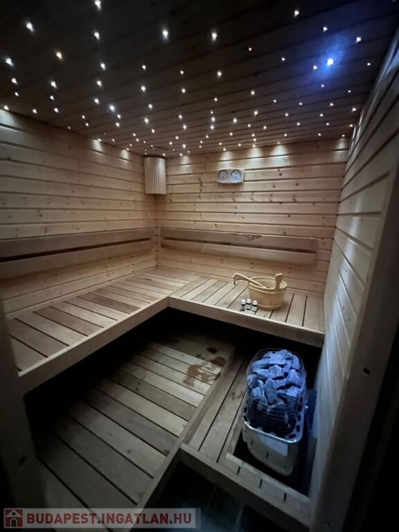 Az ingatlan alaprajzai és helyiséglistája a fotók között található, amiből látható az átgondolt térszervezés. A földszinten a nappalin - ahonnan a földszinti fedett teraszra érkezünk - és az étkező-konyhán kívül, amik egy légteret alkotnak egy lakószoba kapott helyet. Az említett szauna a zuhanyzós fürdő szobában található. A földszinten egy önálló és egy a mosókonyhában elhelyezkedő wc található.
