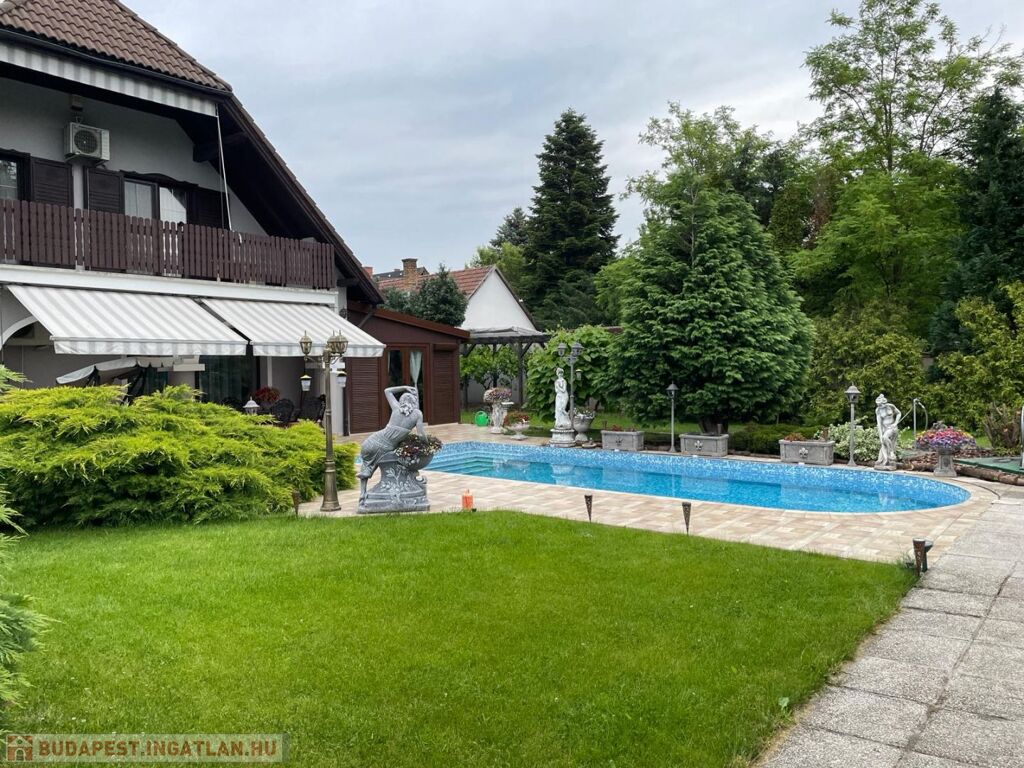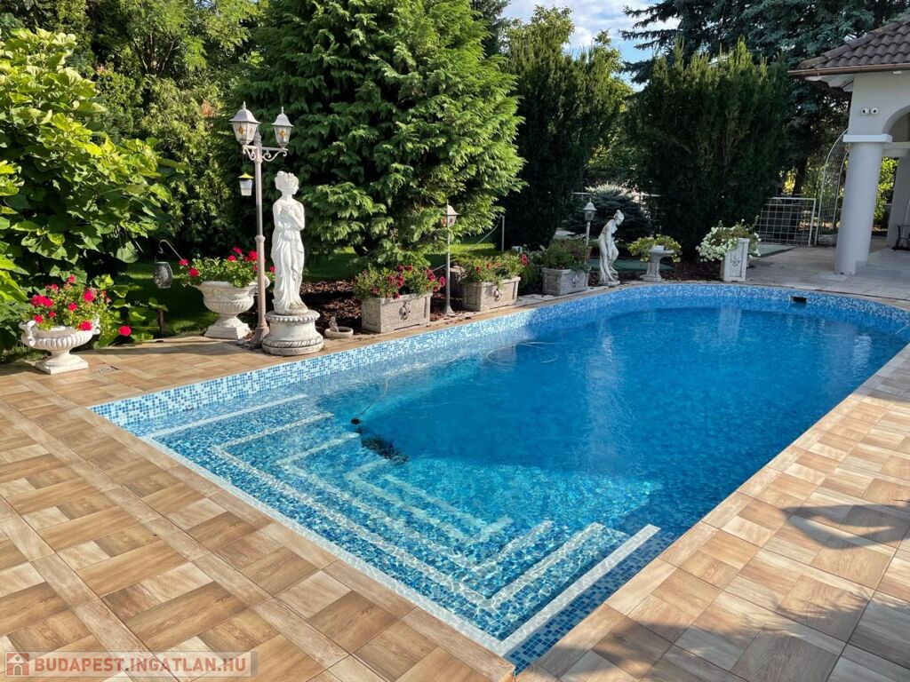 Medencével, parkosított kerttel és 40 méter utcafronttal rendelkezik.