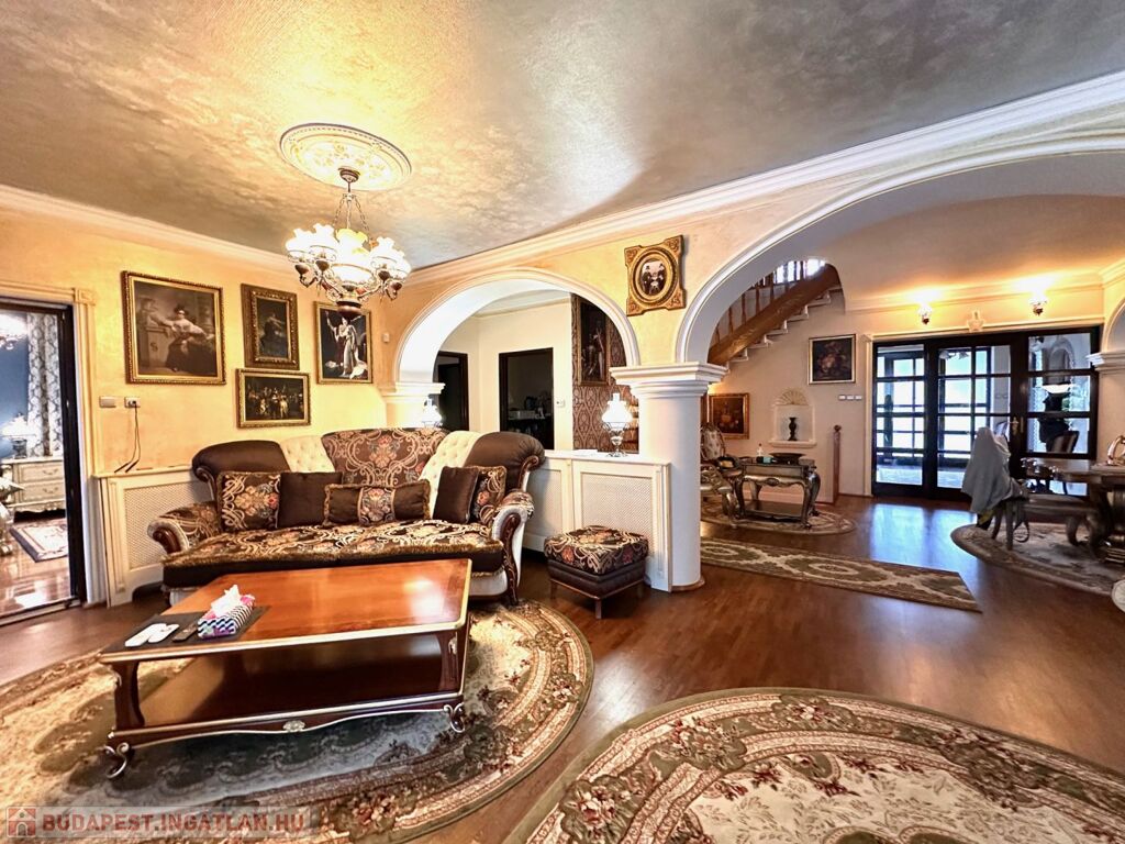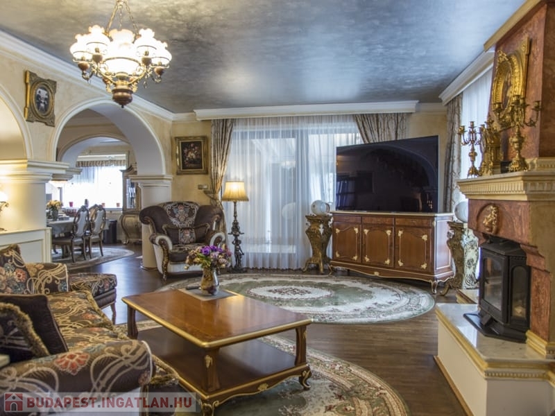 - 3 nappali + 5 hálószoba +4 fürdőszoba+ 2 konyha és 20 m2 télikert, + vendégház