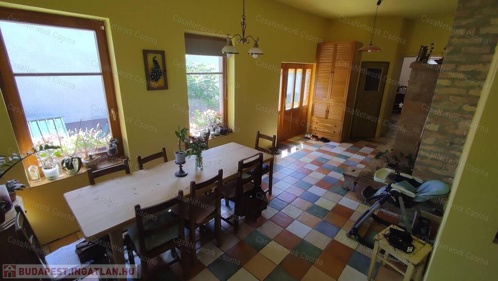 Eladó Győrszentiván kedvelt részén egy br. 180nm-es, 2004-es építésű remek adottságokkal rendelkező családi ház!Főbb jellemzők:- amerikai konyha, nappali + 4 szoba - 860 nm2 –es telek - hőszigetelt fa ablakok - prémium minőségű kondenzációs gázkazán- épített tömegkályha, címeres téglákkal, sütésre és fűtésre is alkalmas - 2 fürdőszoba, mindkettő wc-vel (az egyik újonnan kialakított, fürdőkáddal, a másik extra méretű, lépcsős zuhanyzóval) - szobák parkettával burkoltak, radiátor hőleadókkal - tágas ebédlő és a konyha magas kopásállóságú, egyedi mintázatú járólappal, padlófűtéssel - nappali és ebédlő funkciója szabadon változtatható - 46 nm2 terasz, melynek burkolata az új tulajdonos ízlése szerint alakítható - fúrt kút a kert locsolásához - az udvaron élelmiszer előállítására érvényes engedéllyel és szigetelt falazattal rendelkező cukrászműhely található, melynek fűtéséről, illetve hűtéséről egy 3,5 KW-os Gree klíma gondoskodik - az udvaron szakember által készített terv szerint ültetett, szebbnél szebb növények gondoskodnak a hűs klímáról