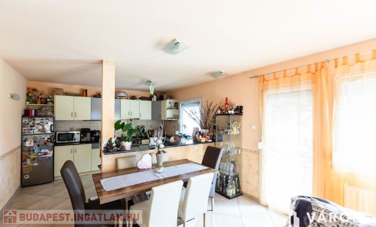 Az ingatlan amerikai konyhás nappalival, három külön nyíló szobával és két fürdőszobával rendelkezik. Az alaprajz jól átgondolt, praktikus és élhető, így a mindennapi használat során kényelmes teret biztosít a család minden tagjának.