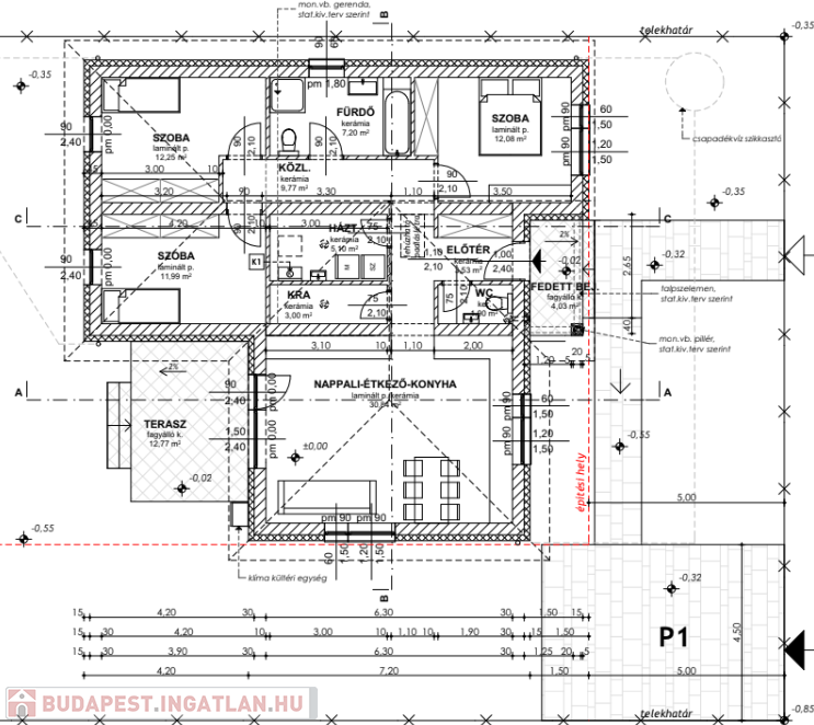 30-as téglafalazattal 15 cm szigeteléssel készül, a födémre 30 cm szigetelés kerül.