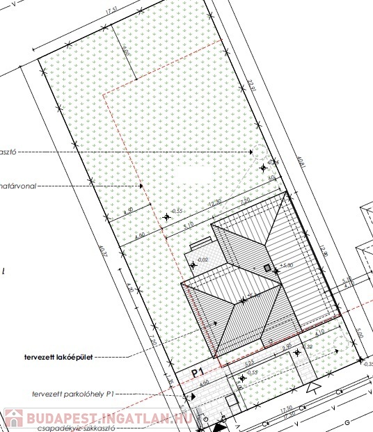 A telek szélessége 17,5 m.