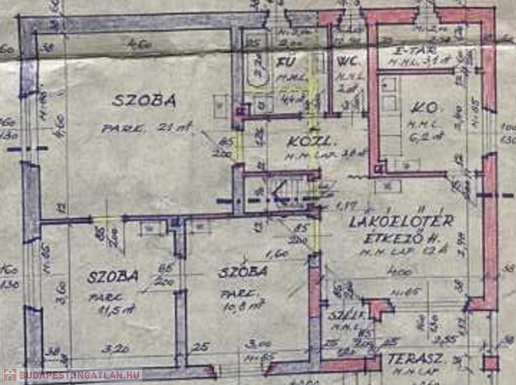3 szoba, étkező, konyha, spejz, fürdőszoba, kazánház (vegyestüzelésű kazánnal), utólag beépített veranda került kialakításra.