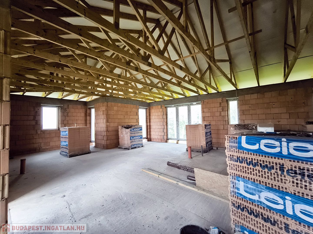 A ház már tető alatt van. A belső válaszfalak kialakításában figyelembe tudunk venni egyedi igényeket.