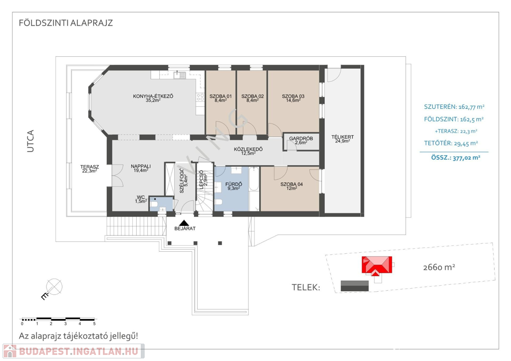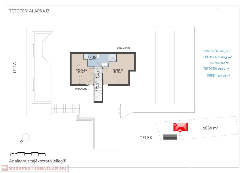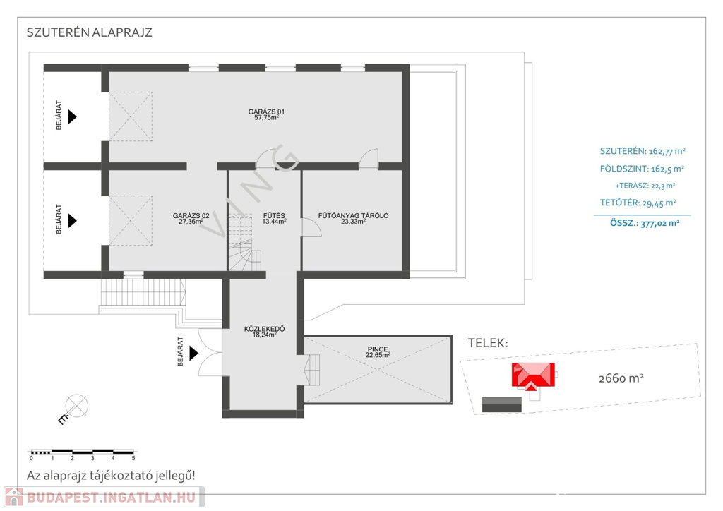 A 3 szintes 377 m2-es ház 2660 m²-es telken található.