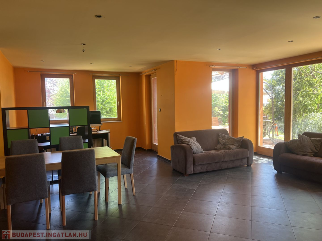 Győrújfalu rendkívül kedvelt részén, újszerű családi házak környezetében, Győr városától alig 5 perces autótávolságra, 425 m2-es, részben térkövezett, parkosított, automata öntözőrendszerrel, fúrt kúttal ellátott saroktelken, 2008 - ban épült, kiváló alaprajzi elrendezésű bruttó 193 nettó 156 m2-es, minőségi anyagokból kivitelezett, 4 szoba + nappalis, 2 fürdőszobás, ikres építési móddal épült családi ház eladó.