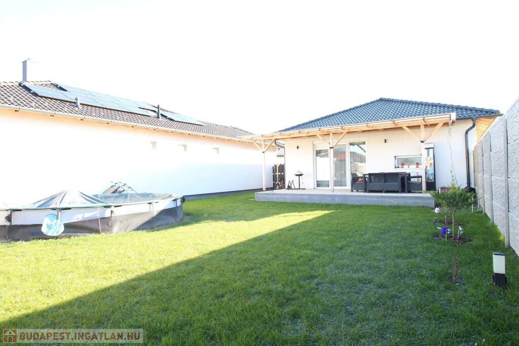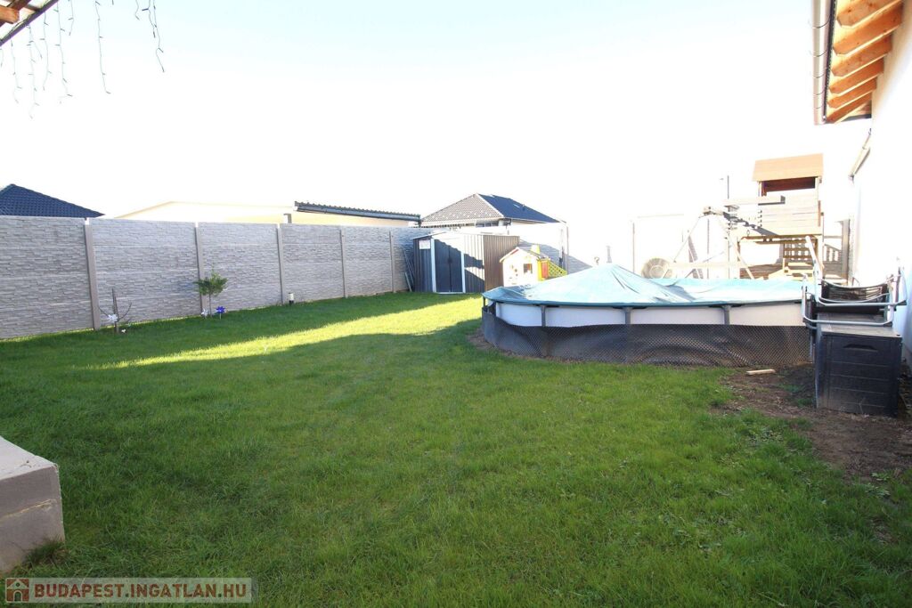 -a 469 m²-es saját telekrész hátsó része zárt, füvesített és biztonságos – ideális gyerekeknek, családi programokhoz és medencézéshez is.