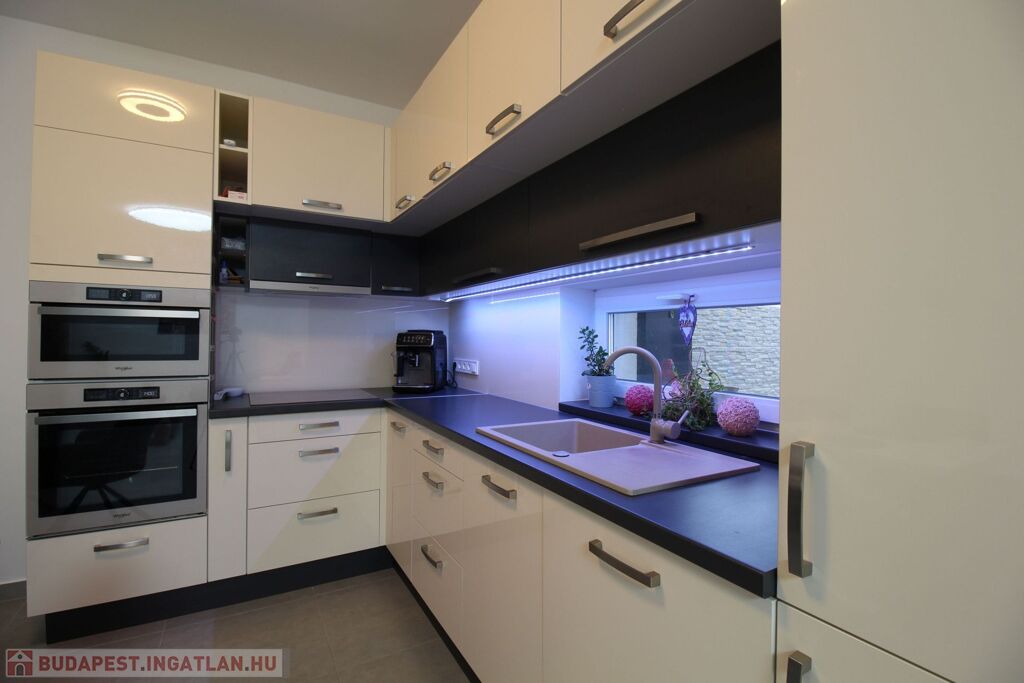 -fiatalos, modern konyhabútor gépesítve, LED világítással