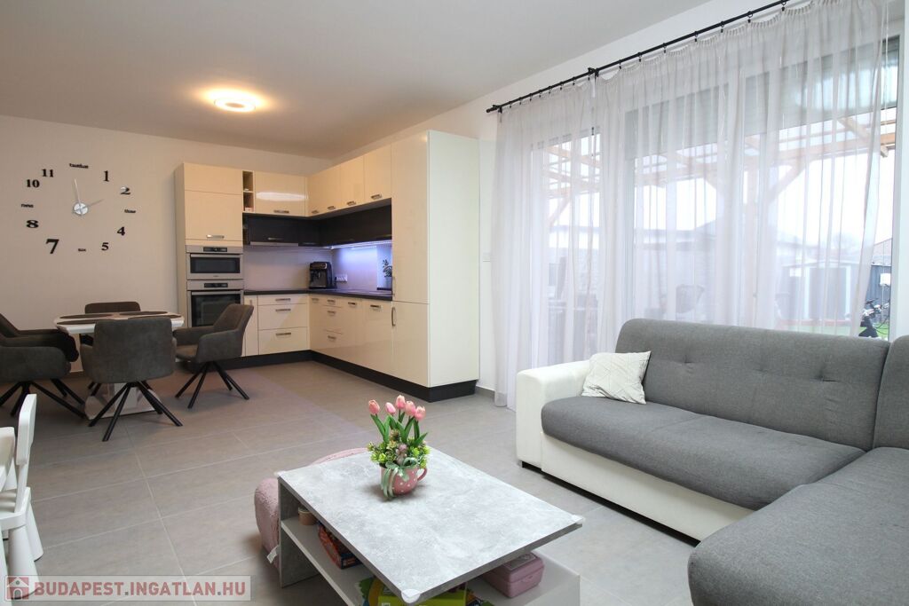 Győrzámolyon kínálok megvételre egy 2022-ben épült, 100nm hasznos alapterületű, 3 szoba+nappalis családiházat, ami 469nm-es telekrészen helyezkedik el. Az ingatlan egy telken épült ikerház szomszédjával, amelyeknek nincs közös részük, nem érnek össze, a telekrészek teljesen leválasztottak, így életérben és intimitásban is egy önálló családi ház élményét nyújtja.