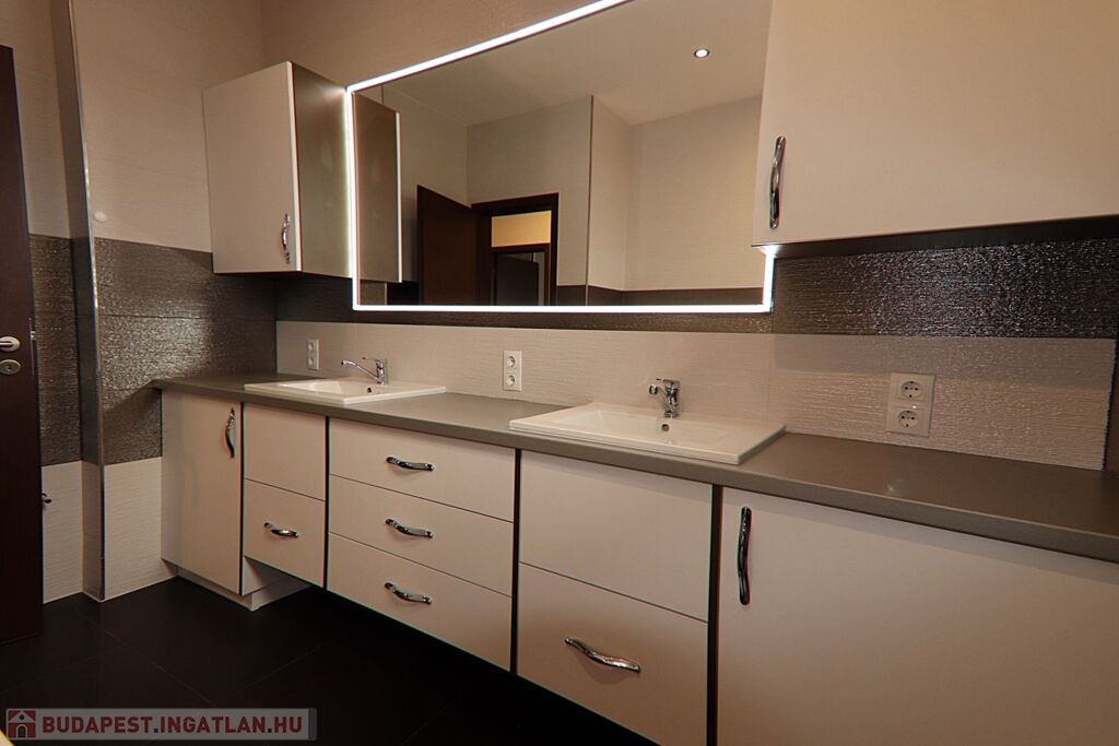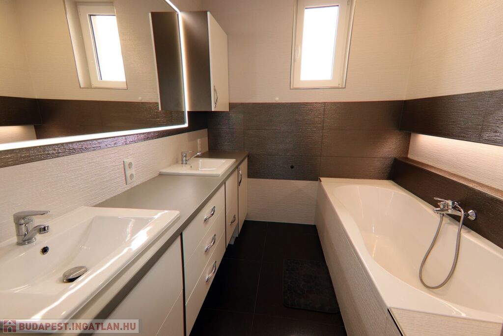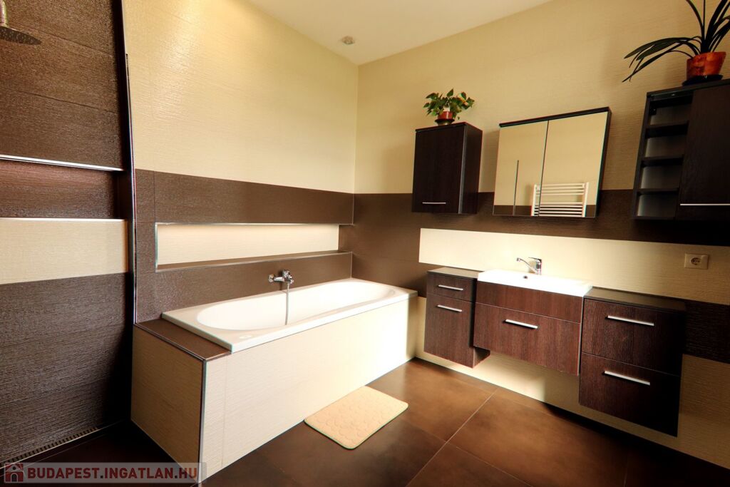 - Burkolat a vizes helyiségekben járólap, a többi helyiségben magas minőségű VINIL