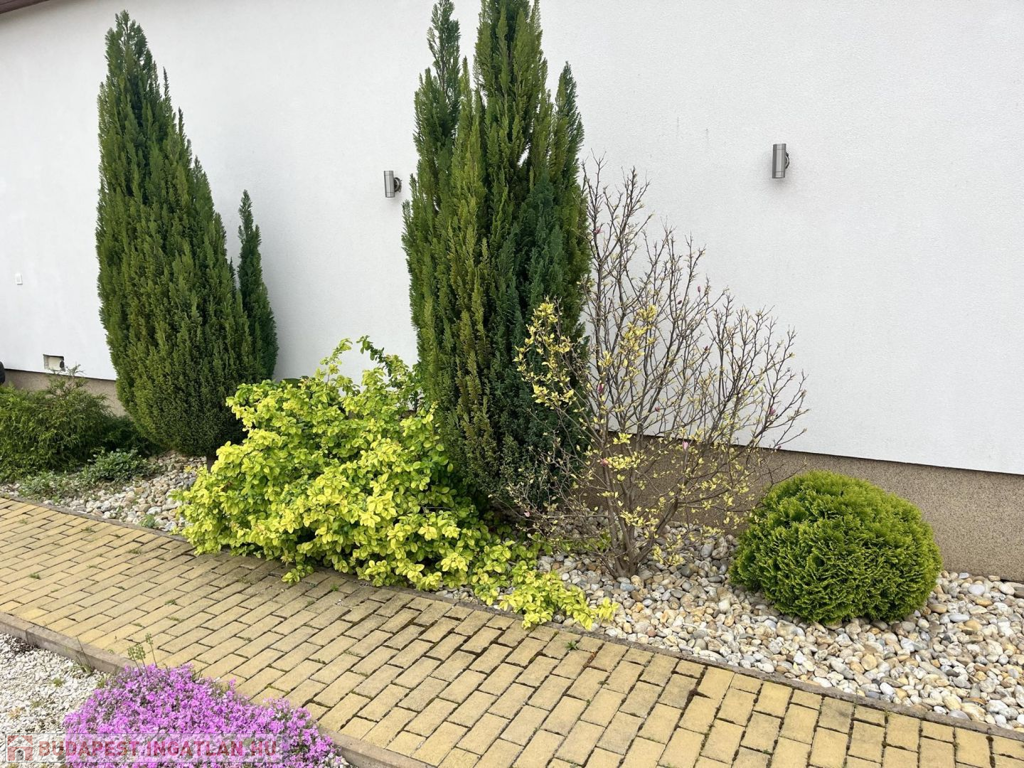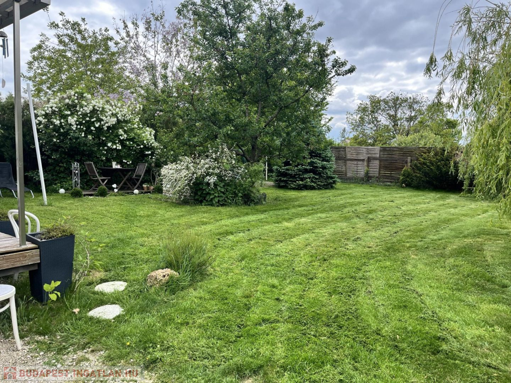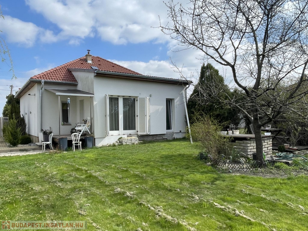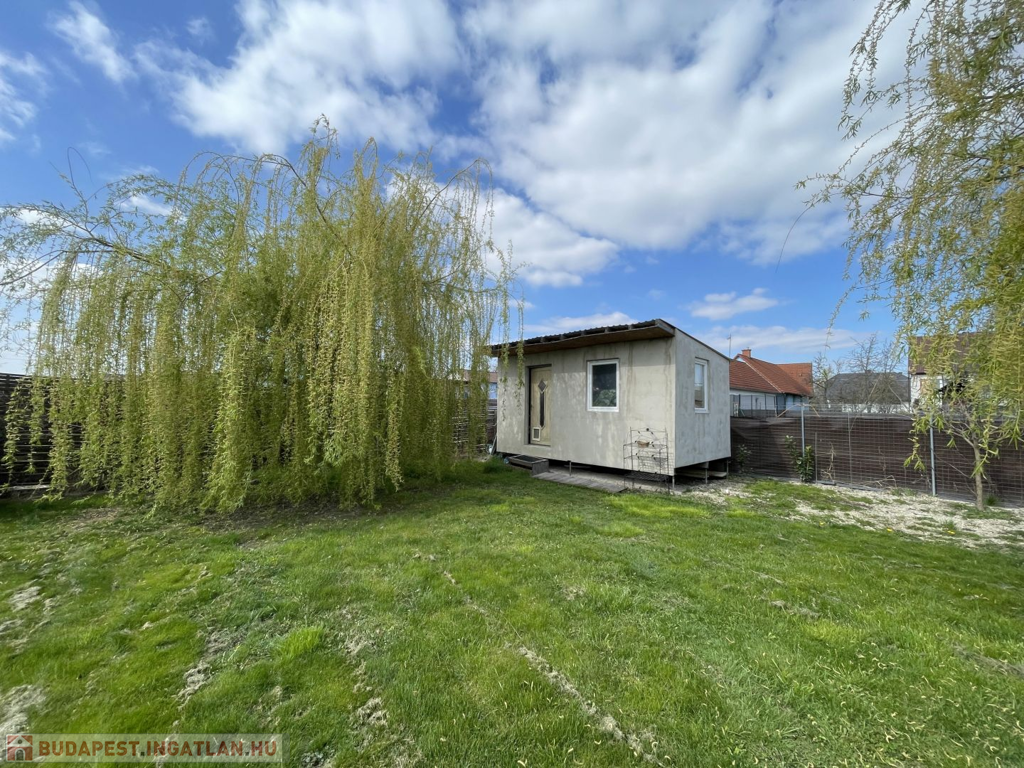 A házikó egy füvesített 980 m2-es telken helyezkedik el, ahol ásott kút, kerti kisház és egy dupla kocsibeálló is a tulajdonosok kényelmét szolgálja.