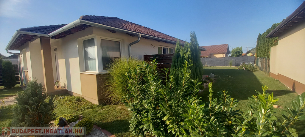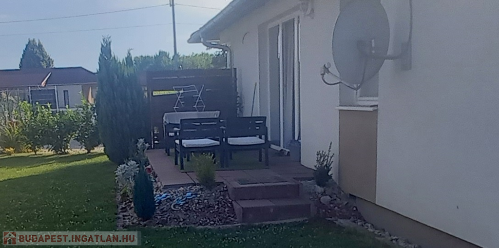 Az ingatlan egy 655 m2-es, szépen karbantartott, füvesített telken helyezkedik el, ahol a ház mellett még két darab kerti tároló is helyet kapott. A ház előtt egy tágas parkoló lett kialakítva, ahol több gépkocsi kényelmes parkolása is megoldható.
