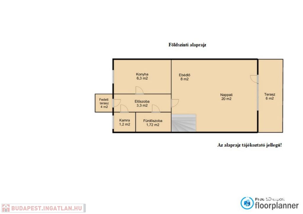 Fedett terasz területe: 10 m2.