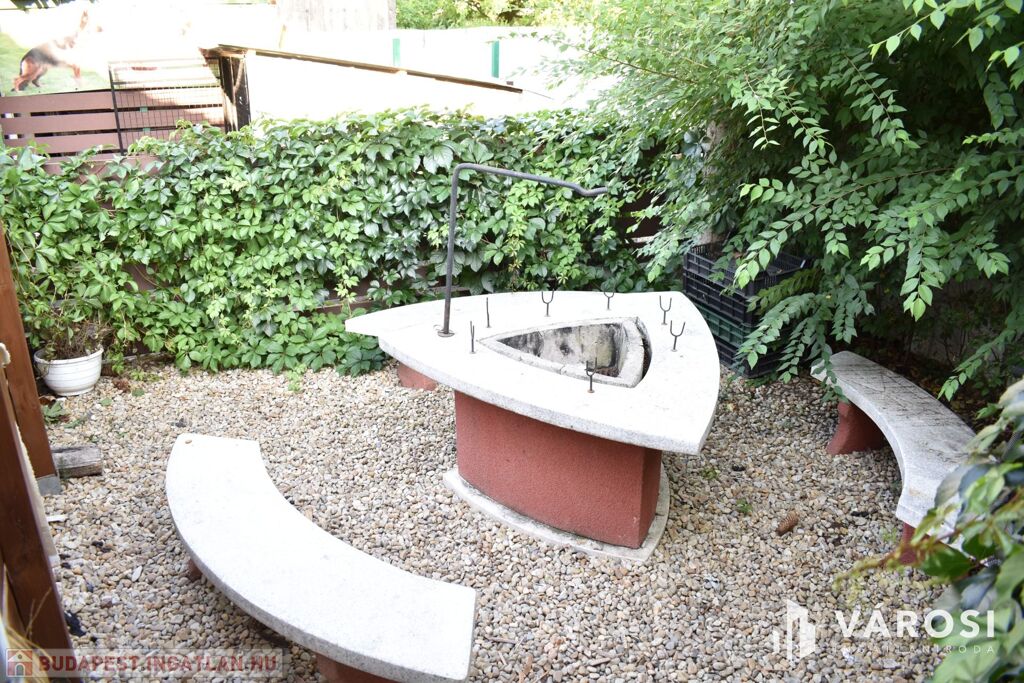 Az ingatlanhoz tartozik egy 501 m2-es teljesen körbekerített, parkosított udvar is, ahol egy hatalmas és hangulatos fedett terasz lett kialakítva. A kertben lévő növények locsolása szinte költségmentesen egy fúrt kút segítségével elvégezhető.