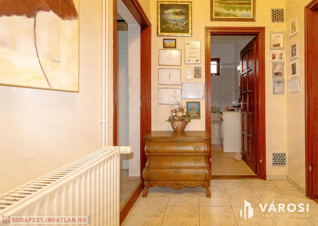 A masszív, szerkezetileg kifogástalan, külső hőszigeteléssel ellátott épület egy fák által beárnyékolt, 1210 m2-es telken áll.