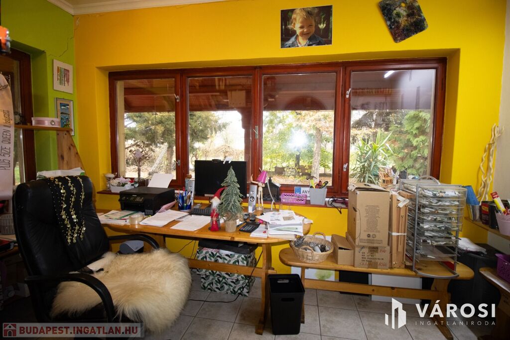 A helyiségek: előszobából két, méretes szoba nyílik, egy kádas fürdő, és a konyha-étkező. Innen érhetőek el a további helyiségek - az egyik irányban egy tusolós fürdő, és a kertre néző nappali, a másik irányban a kamra és egy jelenleg irodaként használt helyiség található.