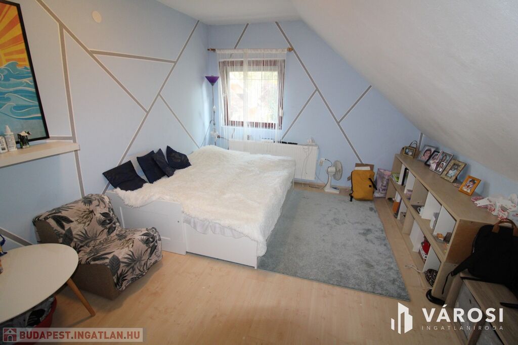 A felső szinten megtalálható egy fürdő+WC, 3 hálószoba, közlekedő.
