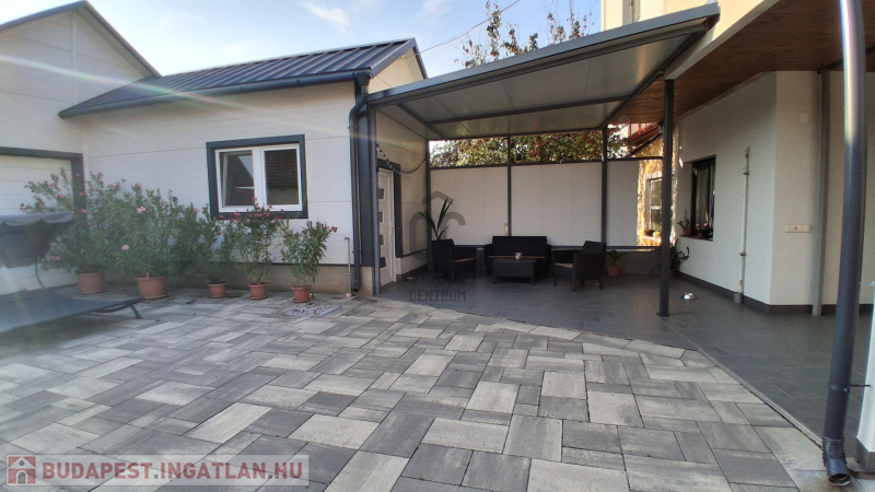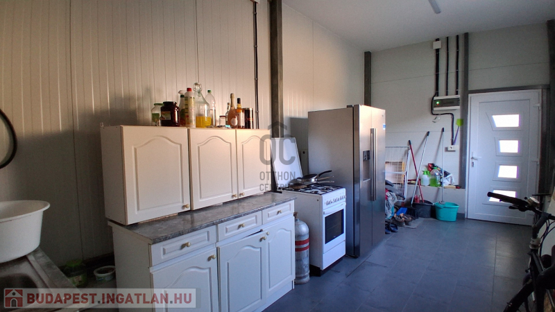 A 140 nm-es könnyűszerkezetes épület az udvar középső részen kiváló lehetőség vállalkozás, s egyéb más tevékenység végzéséhez. Összközműves, akár csak a családi ház!