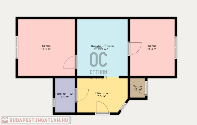 - Helyiségek: 2 szoba, étkező-konyha, tágas előszoba, zuhanyzós fürdőszoba