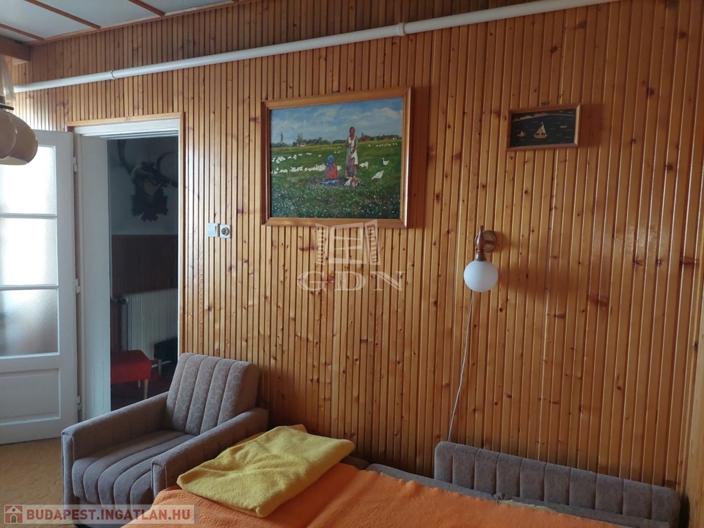 A főépület mögött különálló lakóépületként még van egy szoba, konyha, garázs helységekből álló lakóépület, mely szükség esetén akár különálló lakhatást is biztosíthat. A parkosított udvarra autó beálló út vezet, így akár több autóval is be lehet állni az udvarra.