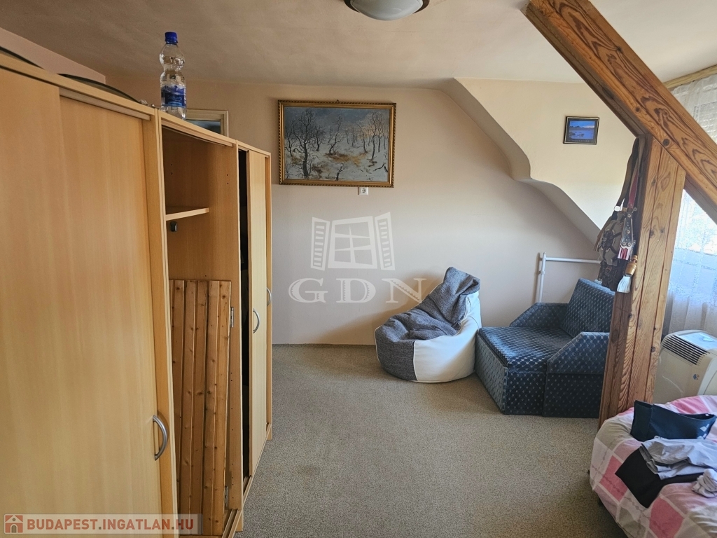 A kertes ház 1986-ban épült, beton alapzattal, részben tégla, részben szilikát falazattal. A tetőszerkezete jó állapotú nyeregtető, cserépfedéssel ellátva. A ház fűtése gázkazánnal és vegyes tüzelésű kazánnal megoldott radiátoros központi fűtés, továbbá több cserépkályha és klíma is rendelkezésre áll. Az épületben a földszinten 3 autónak is elegendő garázs kapott helyet, mely az utca frontjához képest ki van emelve, így nem folyik be a víz, mint a süllyesztett garázsoknál. A lakóépületnek több különálló bejárata van, két generációs házként is hasznosítható.