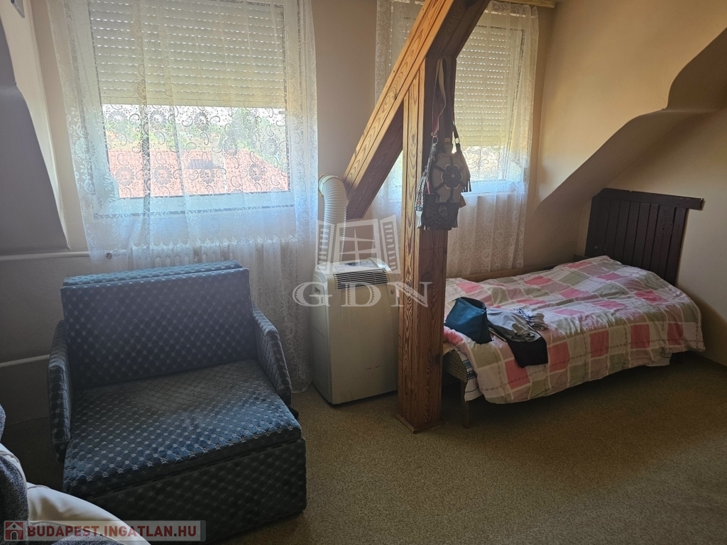A kertes ház 1986-ban épült, beton alapzattal, részben tégla, részben szilikát falazattal. A tetőszerkezete jó állapotú nyeregtető, cserépfedéssel ellátva. A ház fűtése gázkazánnal és vegyes tüzelésű kazánnal megoldott radiátoros központi fűtés, továbbá több cserépkályha és klíma is rendelkezésre áll. Az épületben a földszinten 3 autónak is elegendő garázs kapott helyet, mely az utca frontjához képest ki van emelve, így nem folyik be a víz, mint a süllyesztett garázsoknál. A lakóépületnek több különálló bejárata van, két generációs házként is hasznosítható.