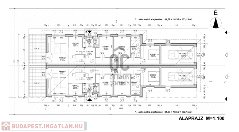 - 84,59 m² nettó hasznos lakóterület + 18,56 m²-es garázs