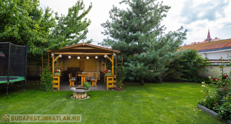 Gondozott pihenőkertjében filagória és kerti tároló is helyet kapott.