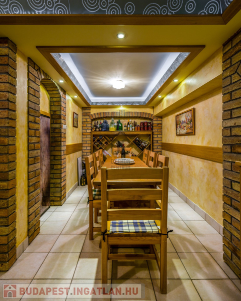 A Porotherm 38 N+F falazat hőszigeteléssel és nemesvakolattal garantálja a minimális rezsi igényt. A gáz cirkó fűtés, 6 db hűtő-fűtő klíma és a nappaliban található Zsolnai cserépkályha biztosítják a meleget. Fa nyílászárói motoros aluredőnnyel felszereltek. A földszinti medencetérben található egy finn szauna is, a pinceszinten pedig borozó és kondiszoba is a kikapcsolódást szolgálja. Folyamatosan karbantartott ingatlan!