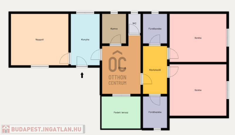 - 3 külön nyíló, tágas, napfényes szoba