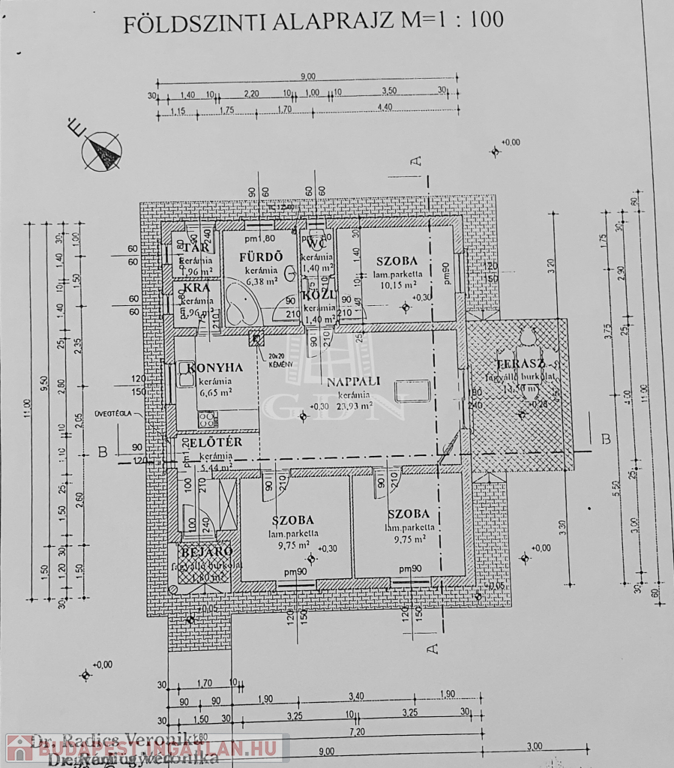 Tájolása: D-K-i, méretek és elrendezés az alaprajzon látható.