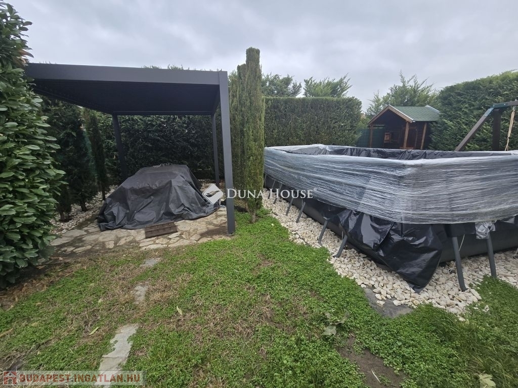 A telek teljes mértékben leválasztásra került, ahol egy 2.86nm-es tároló áll rendelkezésre, illetve egy medence amelynek mérete 6mx275cm. Az ingatlan új építésű ingatlanok között található csendes utcában, autóval iskolától, óvodától, bölcsődétől 5 percre.