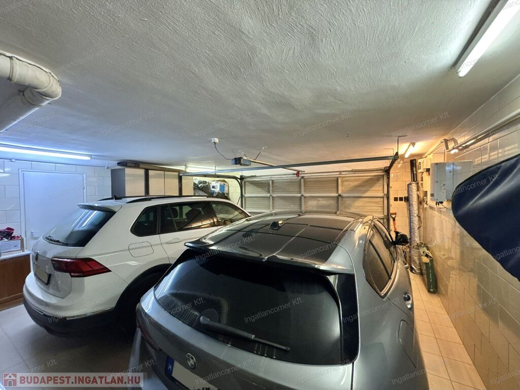 A lakószint alatt egy 105 m²-es, teljes értékű alagsor található, ahol több autó számára kialakított garázs, mosókonyha, tárolók, mellékhelyiség, valamint egy saját konditerem is helyet kapott.