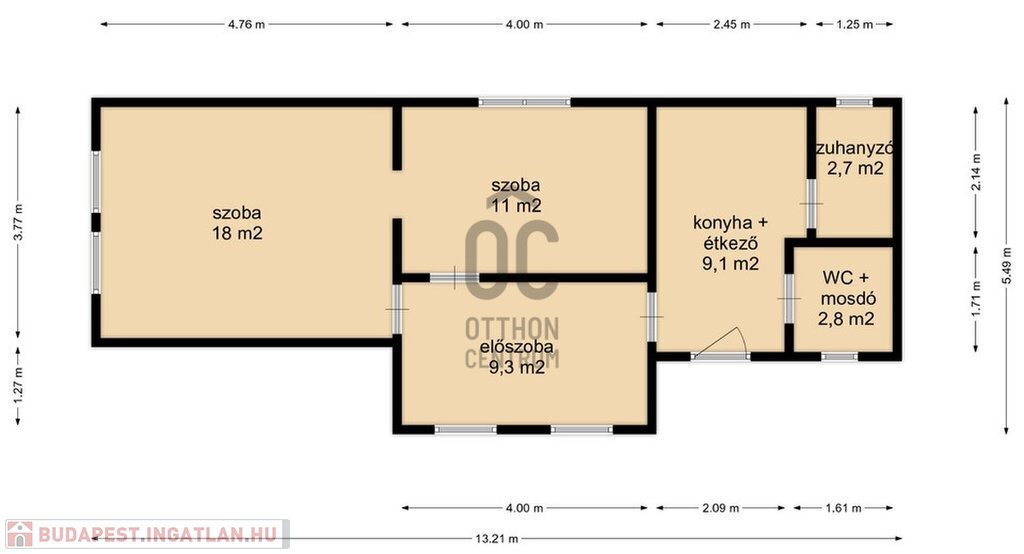 - Az ingatlanban nappali, szoba, konyha, fürdőszoba, WC került kialakításra.