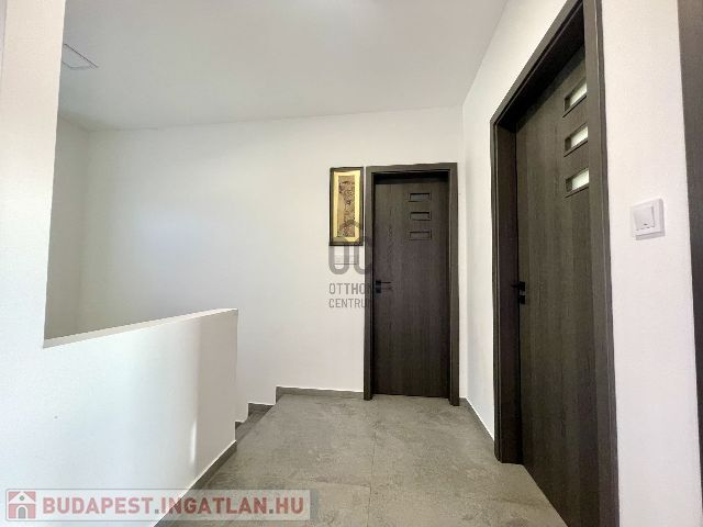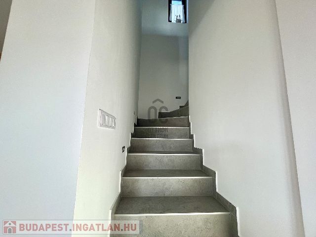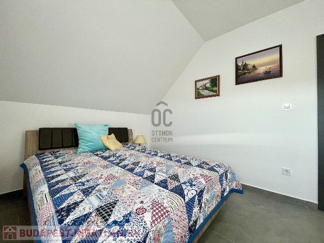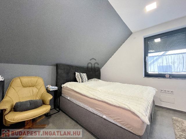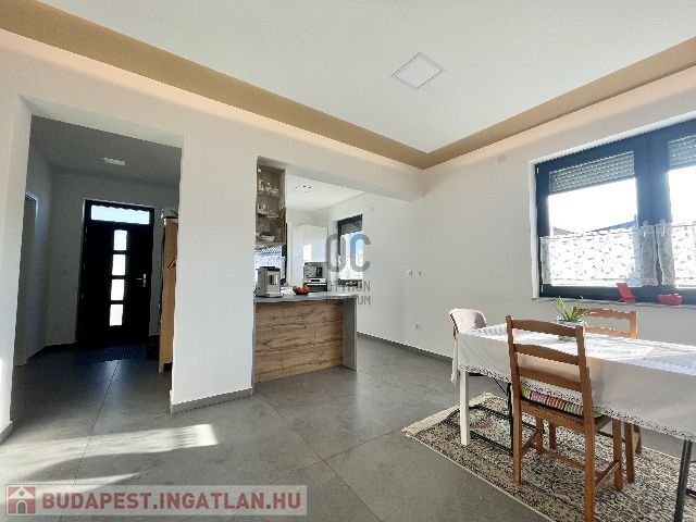 Az ingatlan földszintjén tágas, világos, dél nyugati-észak keleti tájolású amerikai konyhás nappali-étkező, fürdőszoba-wc, háztartási helyiség, az emeleti szinten pedig 3 hálószoba és fürdőszoba-wc került kialakításra.
