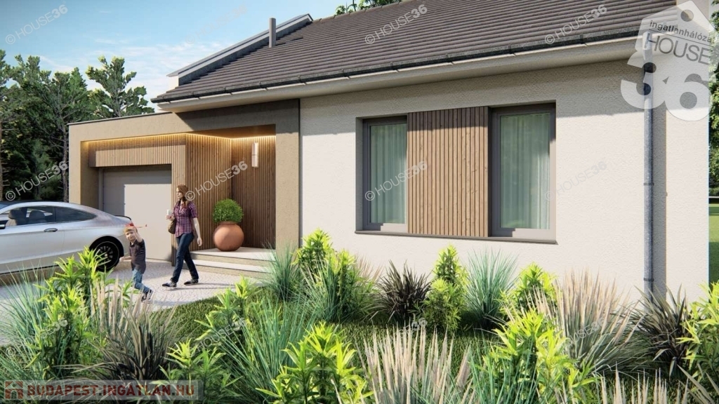 Kiváló elhelyezkedésű, új építésű környéken kínáljuk ezt a90 m2-es, Nappali + 3 szobás prémium kategóriás családi házat, önálló 400 m2-es telken fedett beállóval.