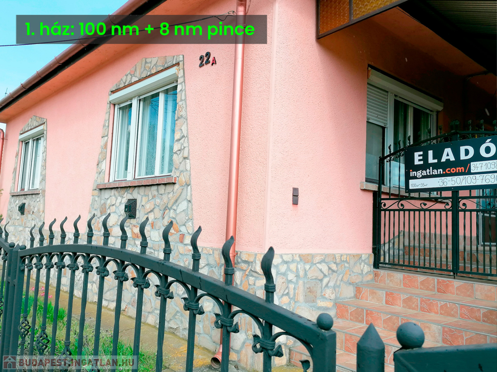 Eladó két különálló ház egy telken – azonnal költözhető, nyugodt környezetben, Budapesthez közel.